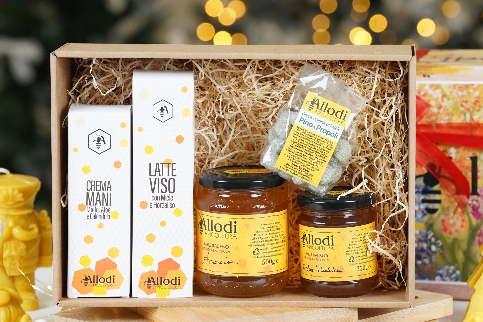 Tutti i nostri pacchi natalizi sono confezionati in un’elegante scatola e contengono all’interno una brochure con la descrizione dei prodotti.