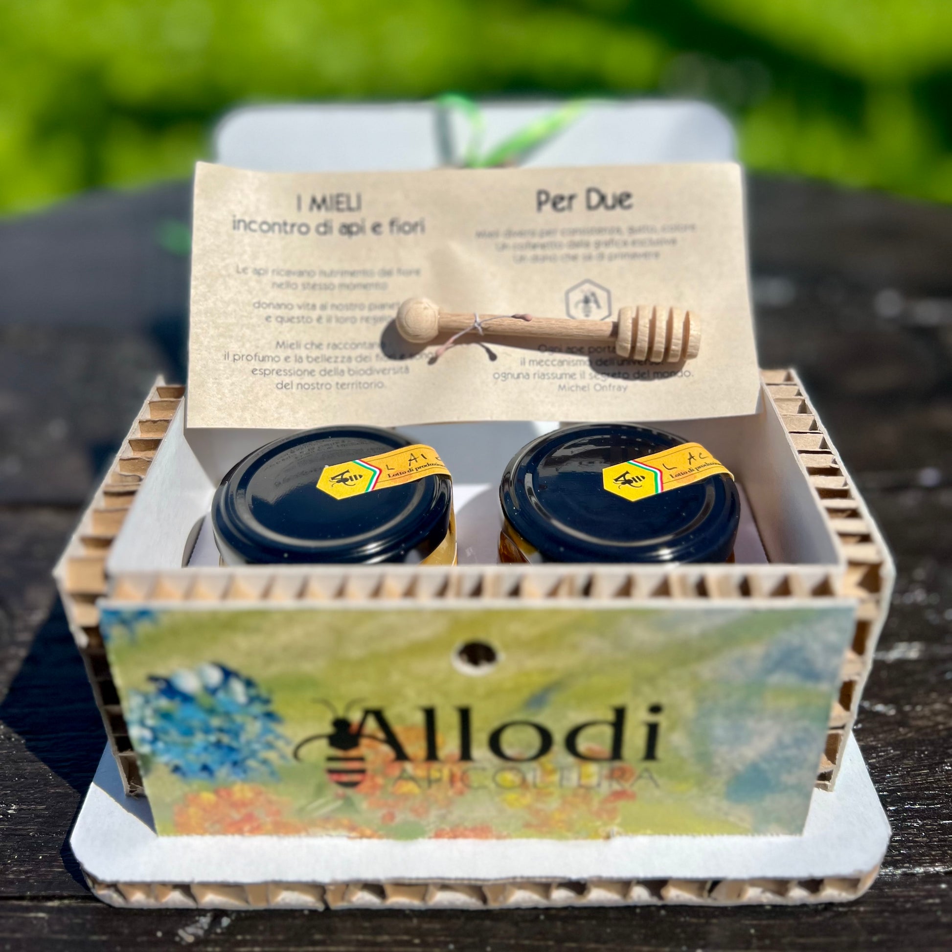 Il nostro Box Degustazione Miele x2 comprende due confezioni di mieli da 110gr pregiati, accuratamente selezionati per offrire un'esperienza sensoriale unica.