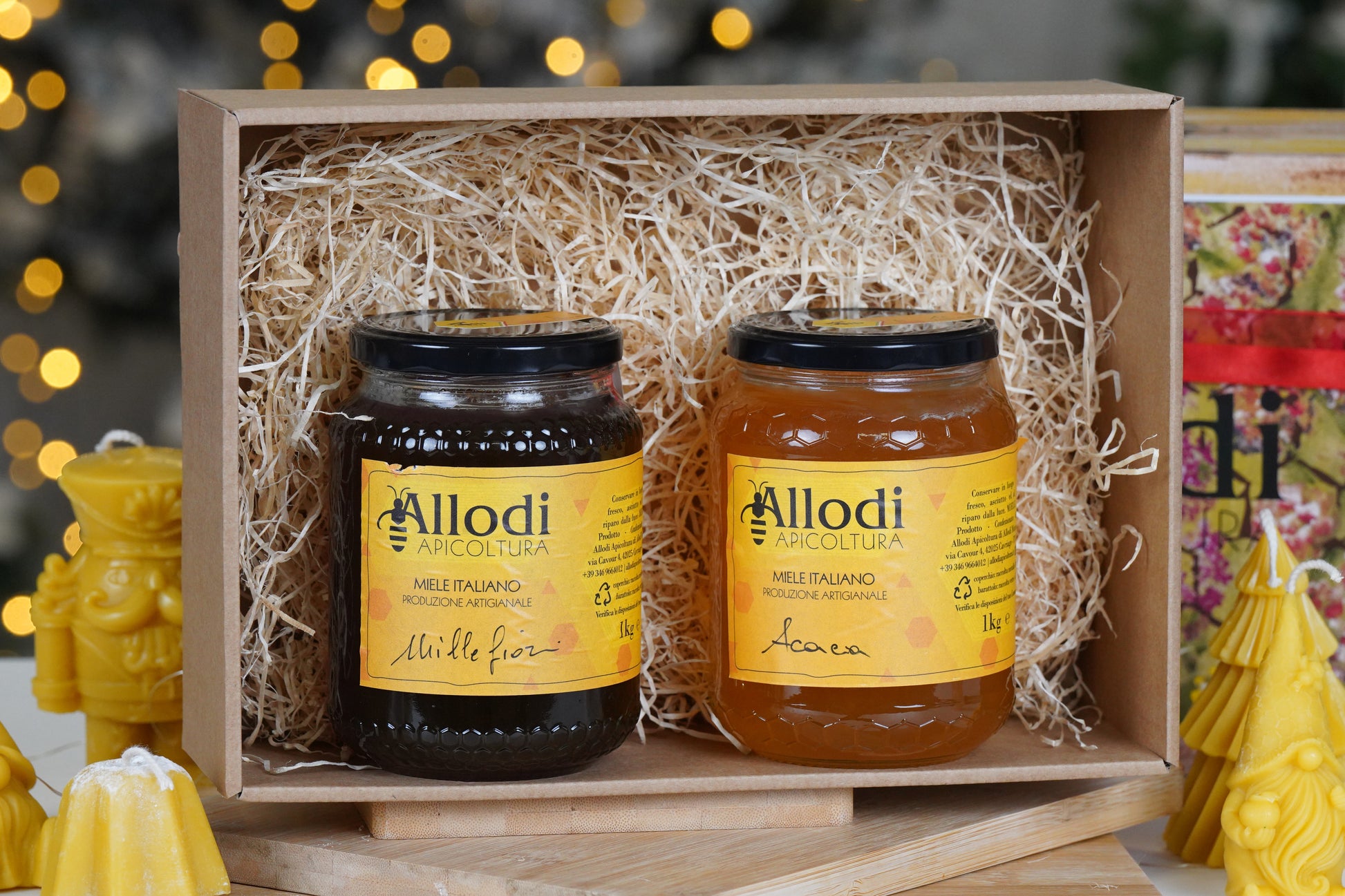 Tutti i nostri pacchi natalizi sono confezionati in un’elegante scatola e contengono all’interno una brochure con la descrizione dei prodotti.